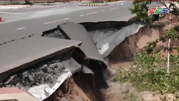 Trong 6 ngày, Kè Thường Thới Tiền (xã Thường Phước, tỉnh Đồng Tháp) ghi nhận hai đợt sạt lở, tổng cộng khoảng 100m kè biến mất hoàn toàn dưới lòng sông. Mất kè, con đường nhựa bị bẻ như bánh tráng.