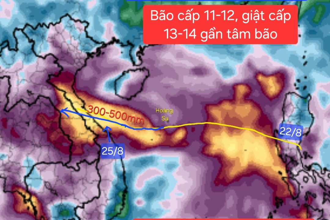 Dự báo ngày 24/8, khi bão di chuyển tới khu vực quần đảo Hoàng Sa, cường độ có thể đạt cấp 10-11, giật cấp 13-14 và còn có thể mạnh thêm khi di chuyển vào vùng biển Vịnh Bắc Bộ. Dự báo ngày 25/8 bão sẽ di chuyển vào đất liền.