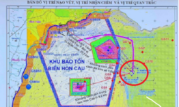Trước đó, Bộ TNMT đã cấp phép cho Công ty TNHH Điện lực Vĩnh Tân 1 nhận chìm gần 1 triệu m3 “vật chất” xuống vùng biển thuộc xã Vĩnh Tân (Tuy Phong, Bình Thuận). Bộ TNMT cho biết thành phần vật chất gồm bùn, cát, vỏ sò, sạn sỏi nạo vét từ cảng, vũng quay tàu, khu nước trước bến chuyên dùng phục vụ Nhà máy nhiệt điện Vĩnh Tân 1 và Trung tâm Điện lực Vĩnh Tân. Thời gian thực hiện từ tháng 6/2017 đến tháng 10/2017. Phương thức là mở đáy xà lan. Khu vực nhận chìm rộng tới 30 ha, cách Khu bảo tồn biển Hòn Cau chỉ 8 km.