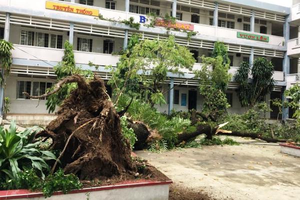 Lý do là nhà trường phải khắc phục sự cố cây xanh bật gốc và cột điện bị gãy đôi tại sân trường sau cơn bão số 9.