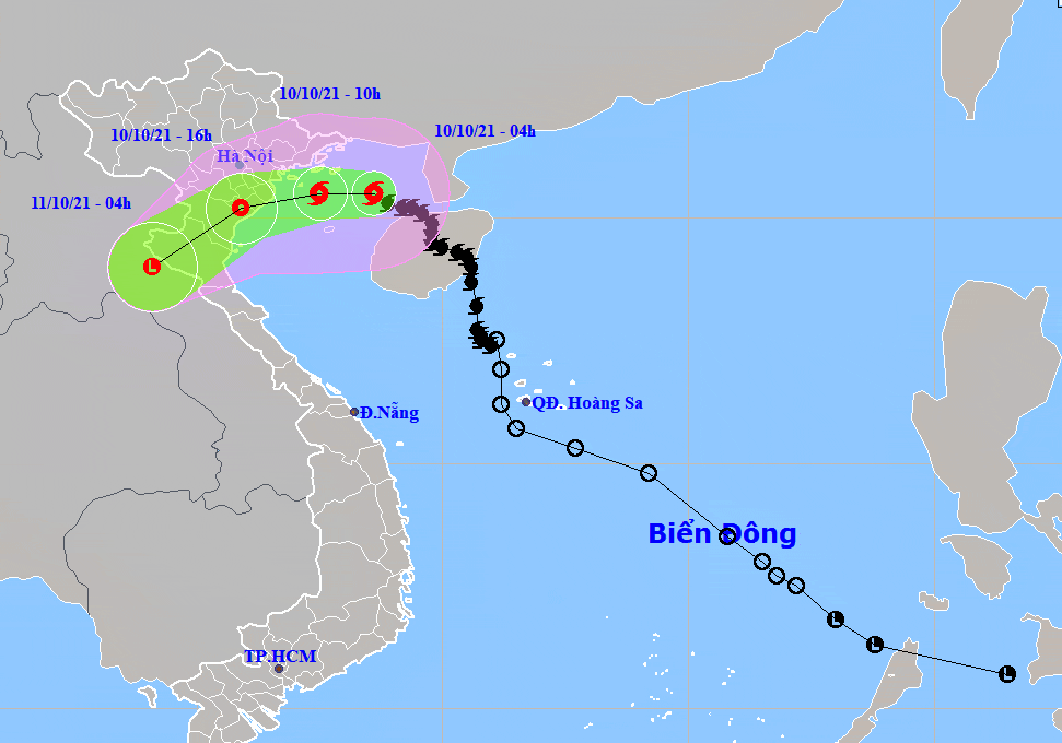 Vào hồi 4h sáng nay, 10/10, tâm bão số 7 cách đảo Bạch Long Vĩ khoảng 100km về phía Đông Bắc. Dự báo đến 10h cùng ngày, vị trí tâm bão sẽ cách Hải Phòng khoảng 100km, cách Nam Định khoảng 130km, cách Thanh Hóa khoảng 180km, giật cấp 10. Đến đêm 11, rạng sáng 12/10, một cơn bão mới có tên Kompasu dự báo sẽ đi vào Biển Đông.