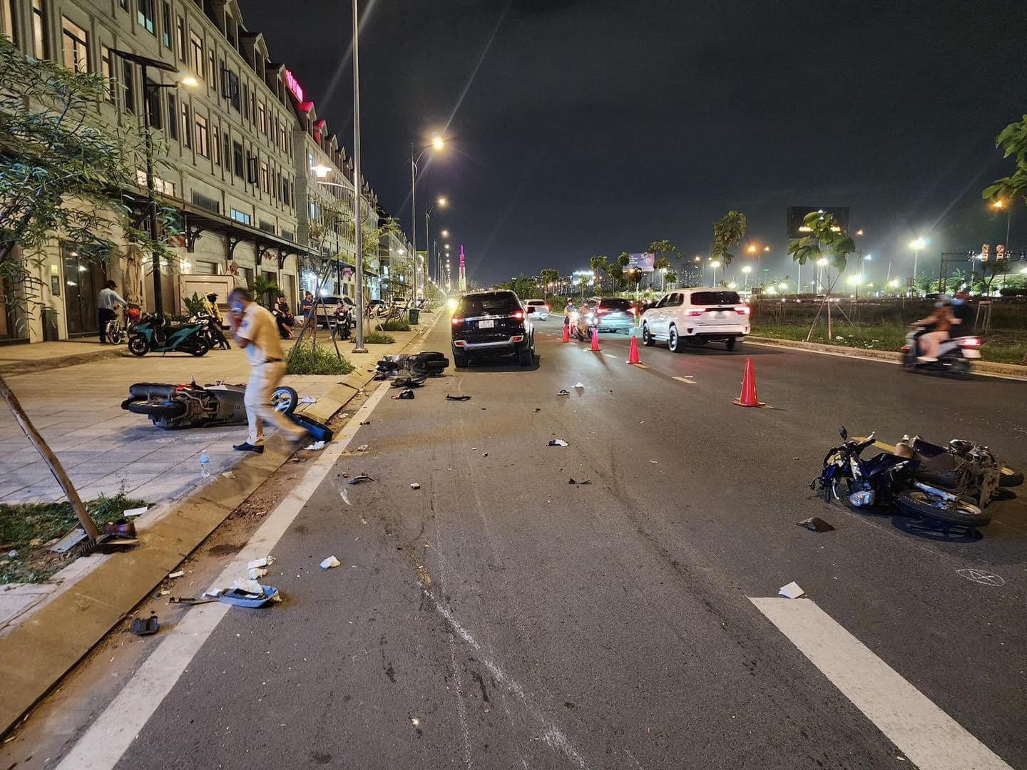Vụ tai nạn làm 4 người trên 3 xe máy bị thương phải nhập viện cấp cứu. Tài xế xe 7 chỗ bị đưa về trụ sở làm việc, kiểm tra nhanh nồng độ cồn trong khí thở cho thấy có vi phạm ở mức hai – vượt quá 0,25 miligam đến 0,4 miligam/1 lít khí thở (tương đương mức phạt tiền 4-5 triệu đồng; tước quyền sử dụng giấy phép lái xe 16-18 tháng, theo điểm c khoản 7 Điều 6 Nghị định số 100/2019/NĐ-CP ngày 30/12/2019).
