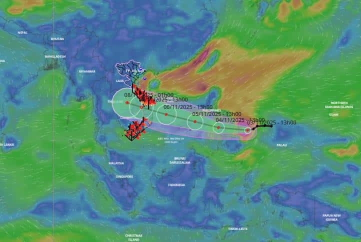 Theo Trung tâm Dự báo Khí tượng Thủy văn Quốc gia, hồi 13h ngày 3/11, vị trí tâm bão ở vào khoảng 10,4 độ Vĩ Bắc; 127,9 độ Kinh Đông, trên vùng biển phía Đông miền Trung Philippines. Sức gió mạnh nhất vùng gần tâm bão mạnh cấp 12 (118-133km/giờ), giật cấp 15. Di chuyển theo hướng Tây Tây Nam với tốc độ nhanh khoảng 25km/h.