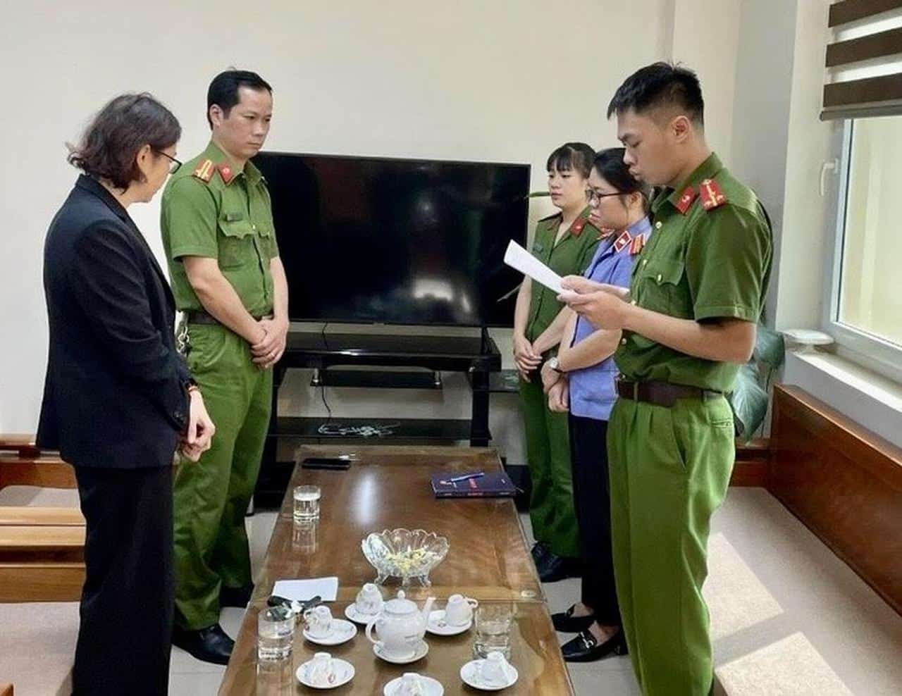 Đồng thời, công an thi hành quyết định khởi tố bị can, lệnh bắt bị can để tạm giam, lệnh khám xét chỗ ở, nơi làm việc đối với bà Hoàng Thị Minh Hiền (SN 1973; trú tại tổ 6, phường Hợp Giang, TP. Cao Bằng) – Giám đốc Công ty Bảo Việt Cao Bằng.