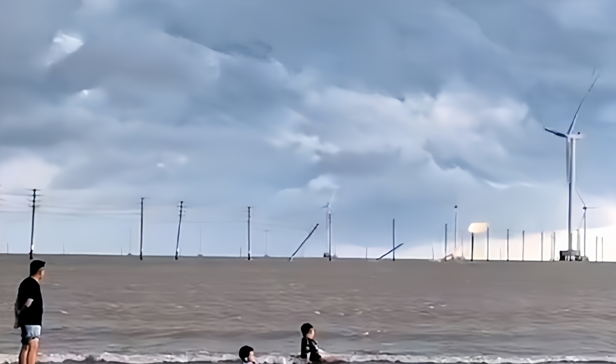 Một số hình ảnh và clip do người dân và du khách ghi lại tại bãi biển Thạnh Hải cho thấy các trụ điện nghiêng, đổ kèm tia lửa điện, gây hoảng sợ cho những người có mặt.
