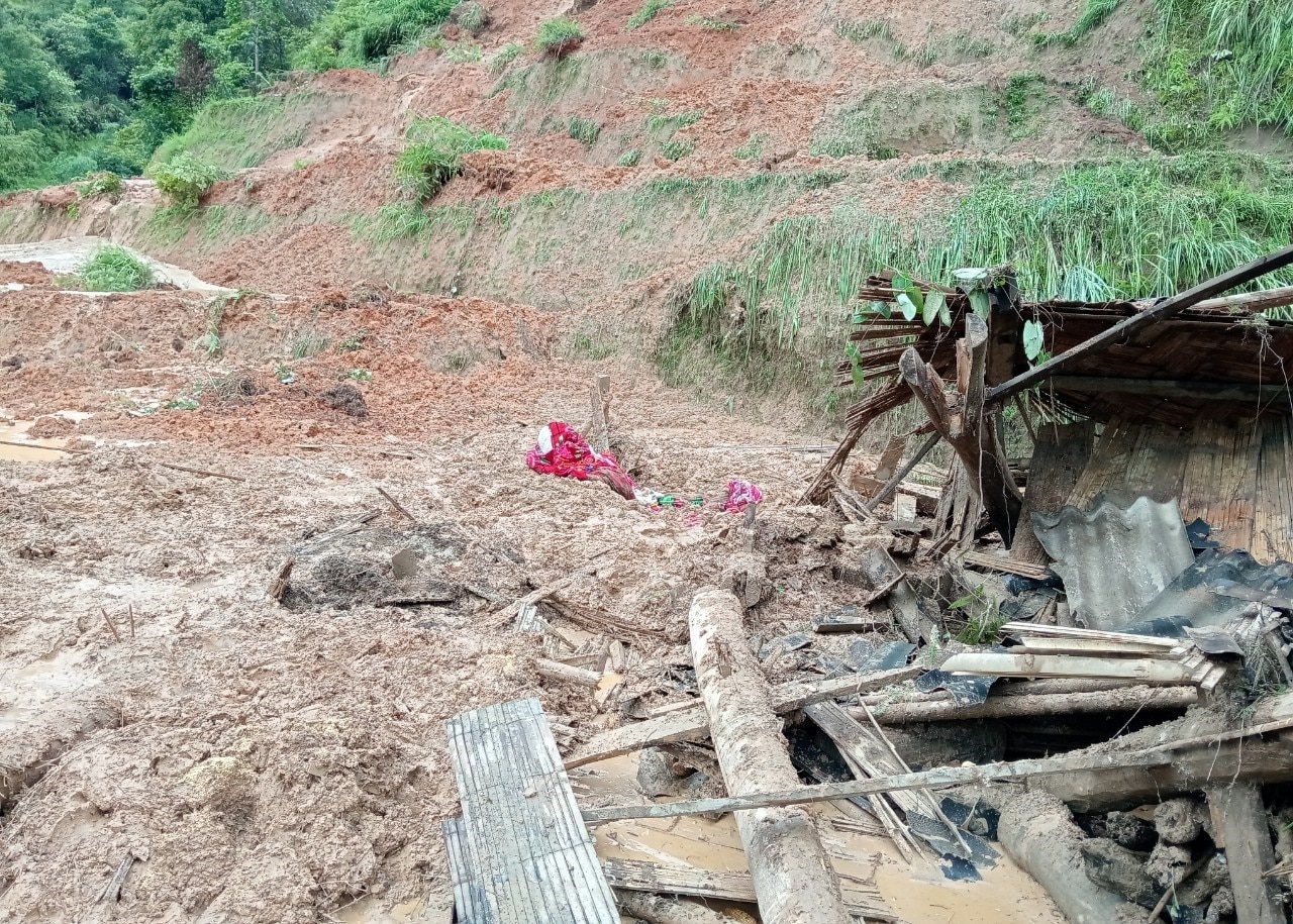 Mưa lớn, đất đá sạt lở đổ xuống san phẳng ngôi nhà, khiến cháu Vàng Văn Đ. ở huyện Hoàng Su Phì (tỉnh Hà Giang) tử vong.