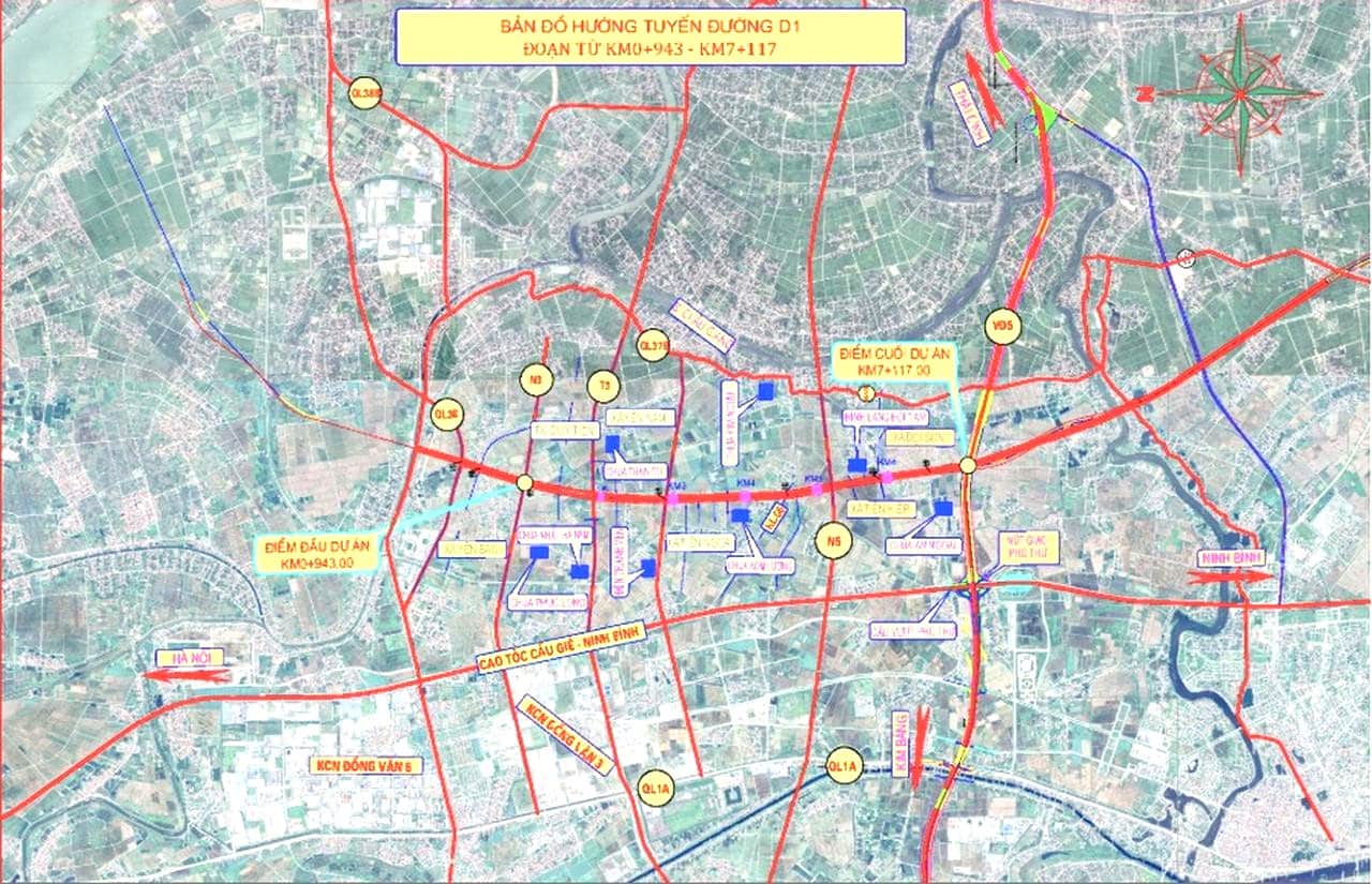 Tuyến đường D1 tại thị xã Duy Tiên có chiều dài hơn khoảng 6,2 km, tổng mức đầu tư gần 1.000 tỷ đồng, dự kiến thi công từ đầu 2025.