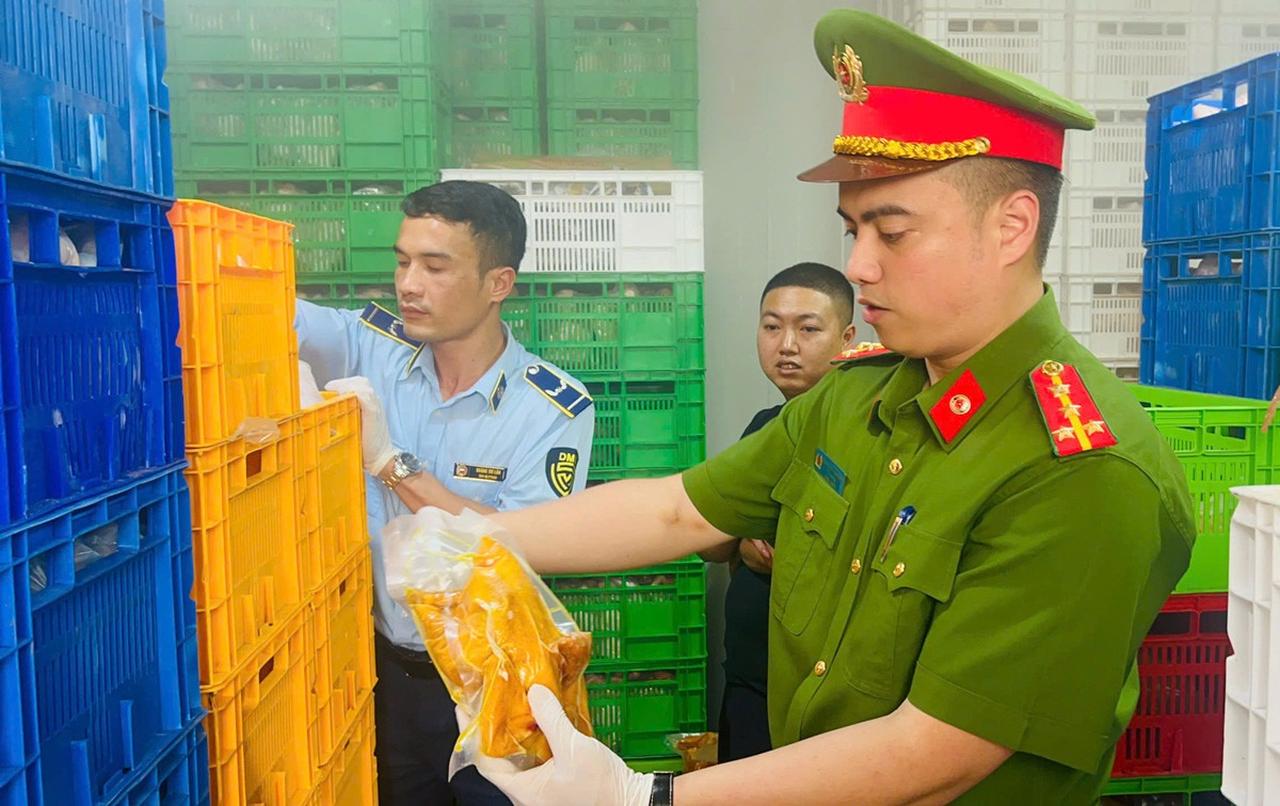 Ngày 21/4, Đội 7 (Phòng Cảnh sát kinh tế, Công an TP. Hà Nội) và Đội Quản lý thị trường số 17 (Chi cục Quản lý thị trường Hà Nội) đã khám xét một kho lạnh gần chợ đầu mối gia cầm Hà Vỹ, huyện Thường Tín.