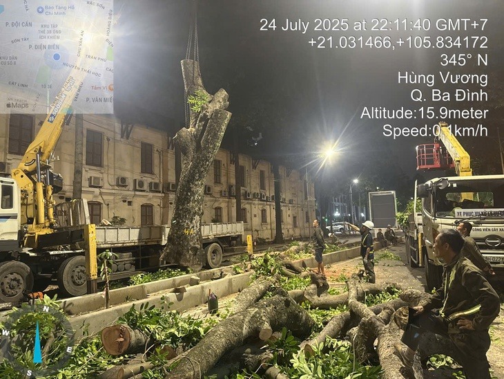 Để chuẩn bị ngày 2/9, TP. Hà Nội thực hiện dịch chuyển 20 cây xanh và chặt hạ 7 cây trên các tuyến đường Hùng Vương, Độc Lập và Vườn hoa Bà Huyện Thanh Quan, phục vụ mở rộng Quảng trường Ba Đình.