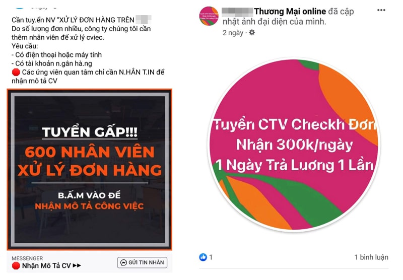 Một bài đăng tuyển dụng công khai của nhóm lừa đảo trên mạng xã hội Facebook