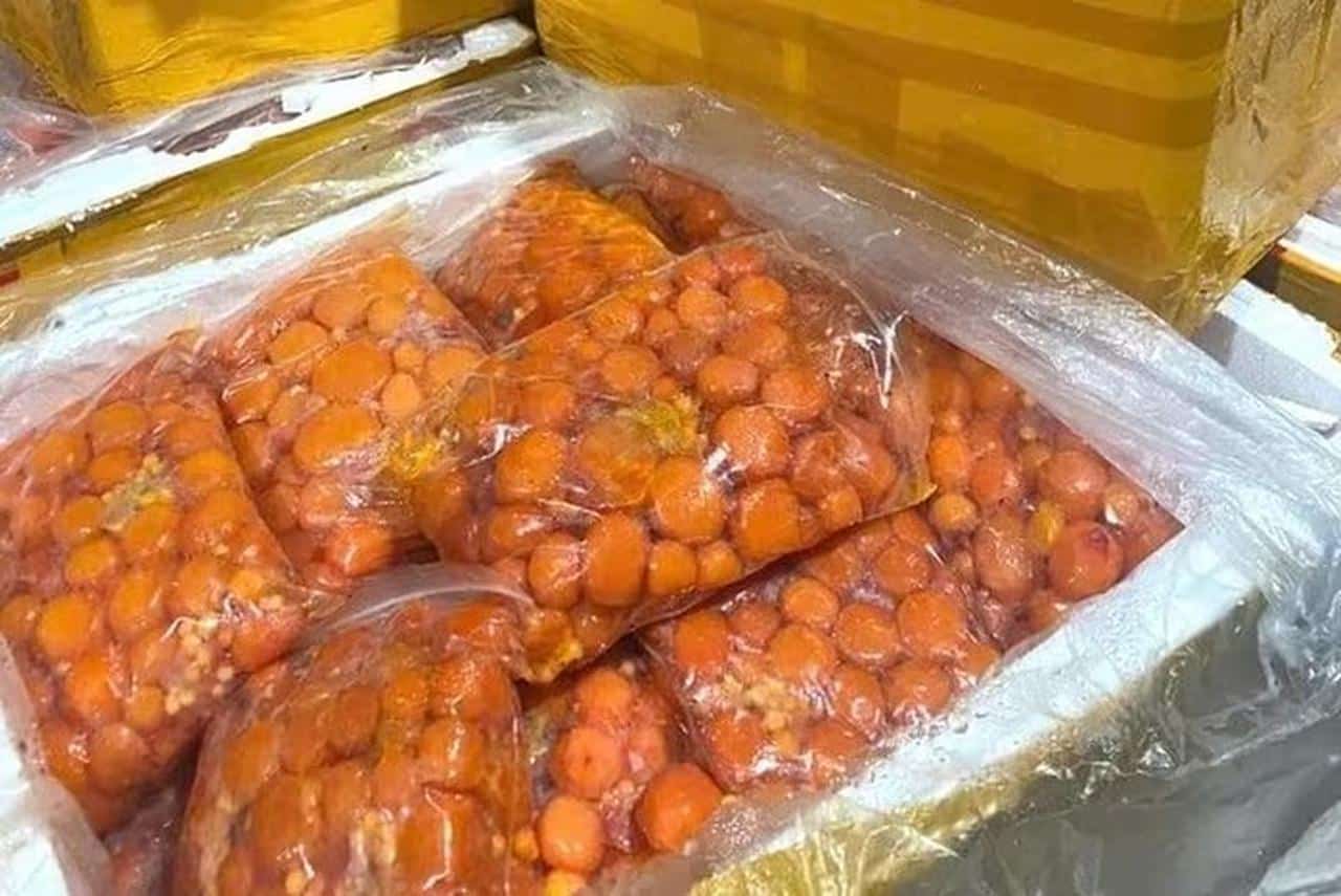 Quá trình kiểm tra kho đông lạnh, lực lượng chức năng phát hiện 7.010 kg trứng non, tràng gà, nầm lợn.