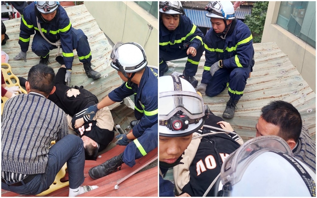 Tại hiện trường, đội cứu hộ đưa nạn nhân lên cáng, sơ cấp cứu cho nạn nhân, đồng thời, triển khai đội hình đưa nạn nhân từ tầng 2 xuống mặt đất, bàn giao cho Trung tâm y tế quận Hà Đông.