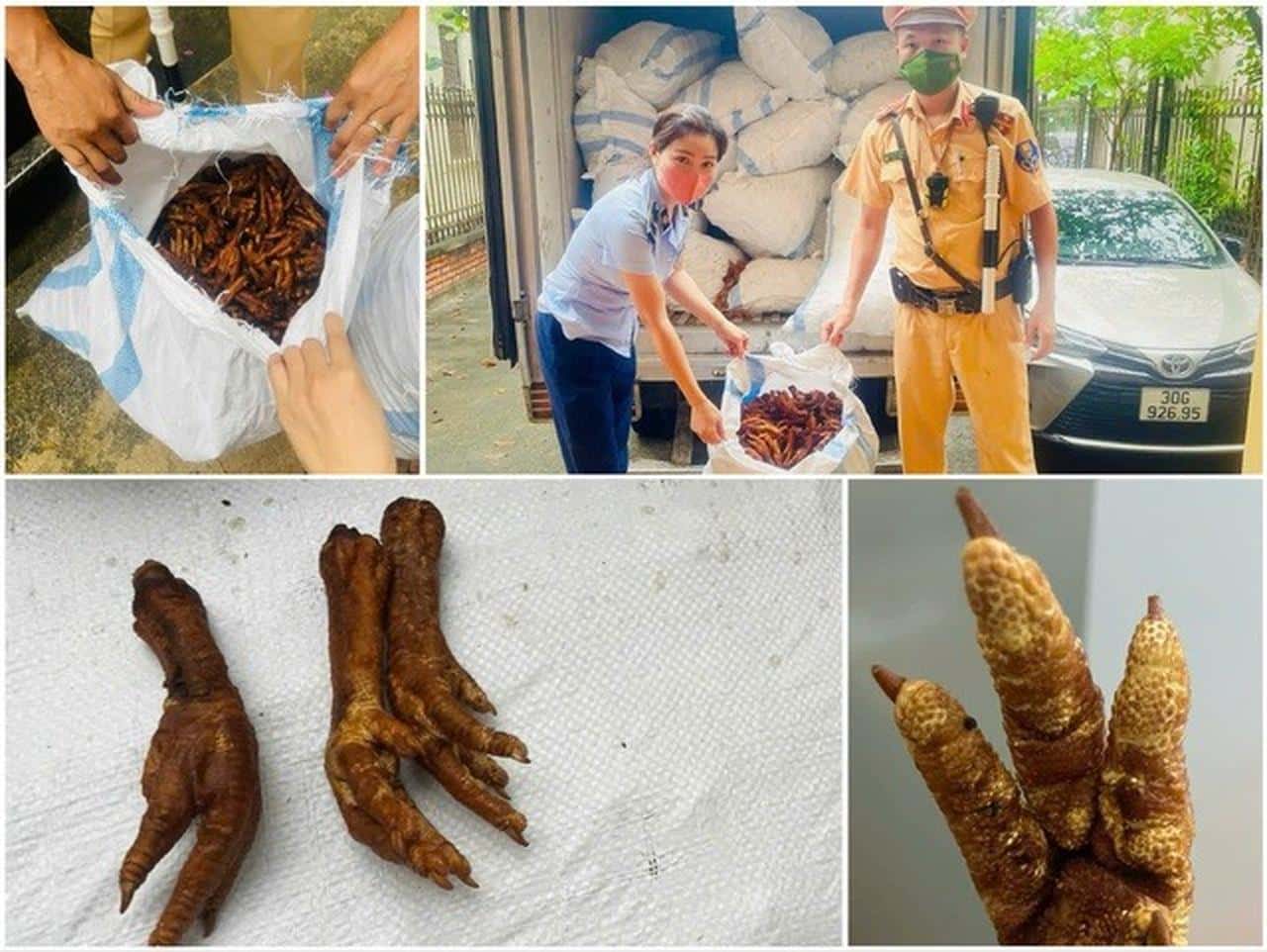 Lái xe, ông L.V.S (SN 1996, trú tại TP. Hạ Long, tỉnh Quảng Ninh), cho biết được thuê vận chuyển số chân gà này từ tỉnh Hòa Bình về quận Bắc Từ Liêm, TP. Hà Nội để tiêu thụ.
