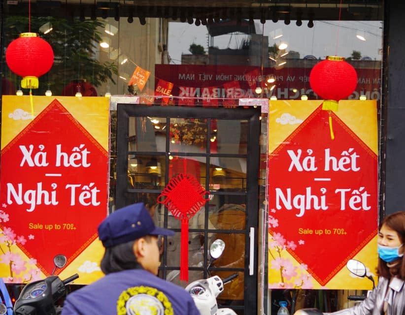 Mỗi dịp giáp Tết Nguyên đán, các cửa hàng ở thủ đô Hà Nội lại nườm nượp khách hàng ra vào tranh thủ tuần lễ “xả kho”. Nhiều mặt hàng được giảm giá, khuyến mại lớn, trong đó, quần áo là mặt hàng thu hút nhiều khách hàng nhất. Những con phố như: Thái Hà, Chùa Bộc, Phạm Ngọc Thạch, Bạch Mai, Xuân Thủy, Hồ Tùng Mậu, Minh Khai,… bị tắc đường liên tục bởi lượng khách ra vào các cửa hàng tăng đột biến và lượng xe lưu thông rất lớn.