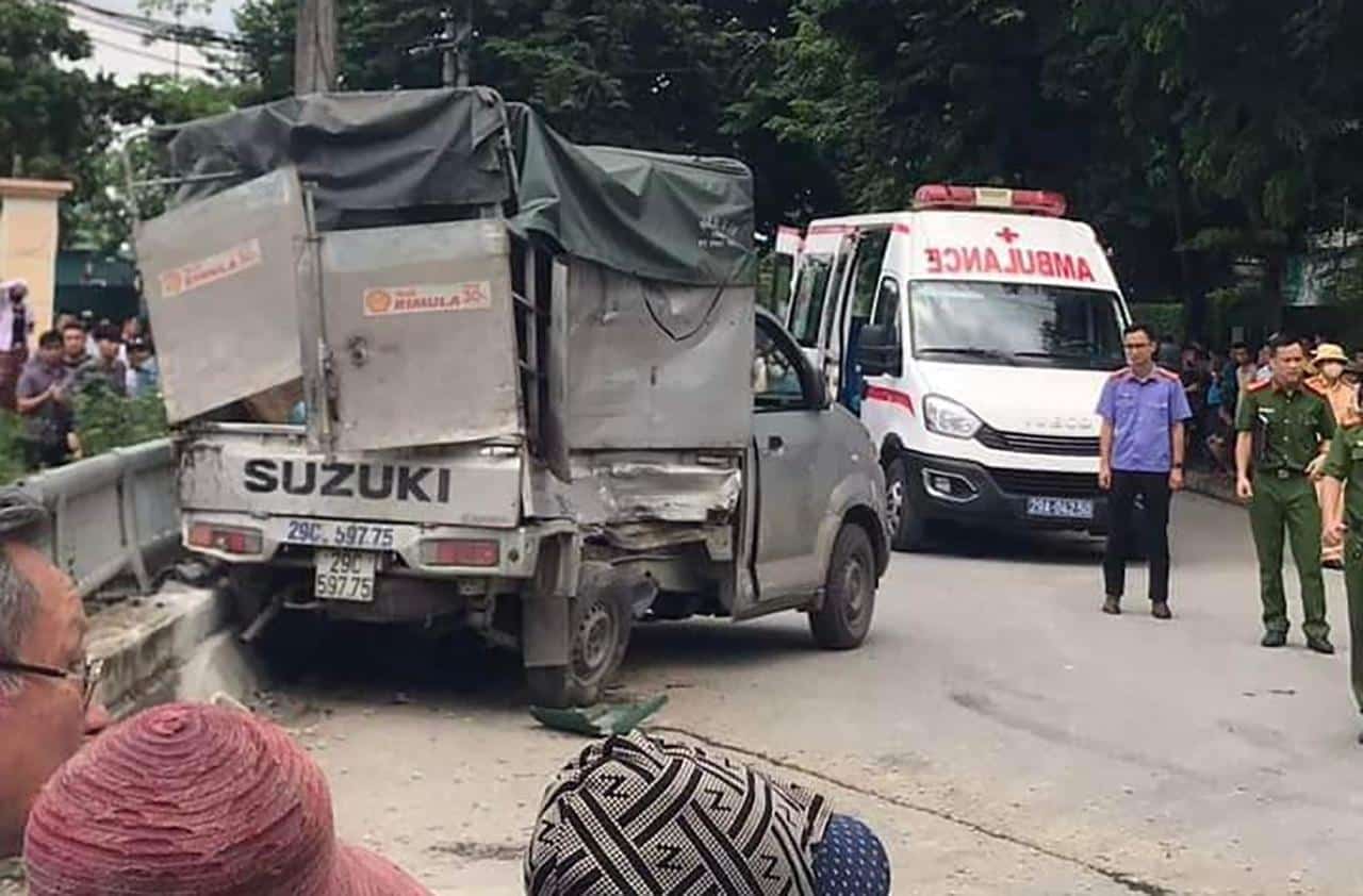 Khi vừa đi qua ngã 4 giao với đường liên xã Ba Chàng (xã Dương Liễu, huyện Hoài Đức), lái xe không giảm tốc độ nên phần đầu xe đâm vào phần thùng xe bên phải của xe ô tô tải loại xe 7 tạ biển kiểm soát 29C-59775 do anh Lê Văn Ngà (sinh năm 1966, ở cụm 9, xã Thọ An, huyện Đan Phượng, Hà Nội) điều khiển hướng xã Dương Liễu đi xã Đức Thượng đang đi vào ngã tư.