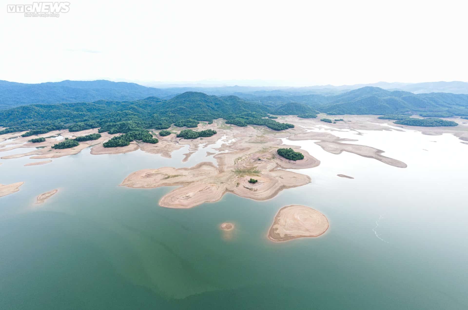 Nắng hạn kéo dài cùng việc vận hành tưới tiêu liên tục khiến hồ Kẻ Gỗ (Hà Tĩnh) với sức chứa 345 triệu m3 nay chỉ còn 45 triệu m3.