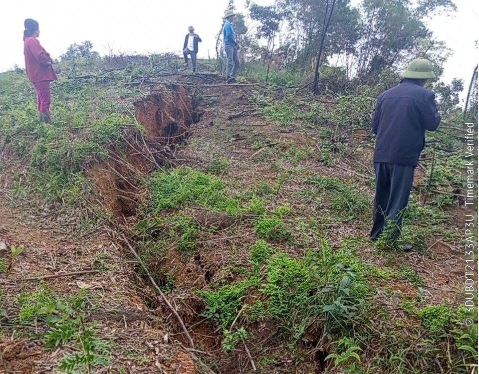 Quả đồi cao 50m tại thôn Quyết Thắng (xã Sơn Kim 2, tỉnh Hà Tĩnh) hiện đã nứt dài 150m, sụt lún 80cm, có điểm bị sụt tới 1m. Quả đồi hầu như không có cây gỗ lớn, vì được dùng làm đất rừng sản xuất.
