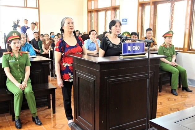 Hai bị cáo Hoàng Thị Sơn và Thái Thị Bé tại phiên tòa sơ thẩm ngày 8/8. (Ảnh: thanhtra.com.vn)