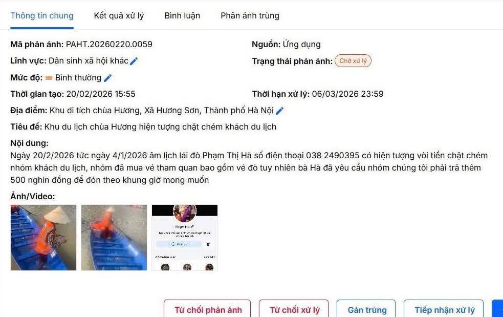 Thông tin phản ánh đối với lái đò Phạm Thị Hà được nhóm du khách gửi qua ứng dụng iHanoi. Nhóm du khách cho biết ngày 20/2, tức ngày mùng 4 Tết âm lịch, bị lái đò Phạm Thị Hà đòi thêm tiền để đón theo giờ mong muốn, dù được giải thích đã mua vé tham quan bao gồm tiền vé đò. Ban Tổ chức sau đó yêu cầu Hợp tác xã Dịch vụ du lịch Chùa Hương xác minh, xử lý vụ việc.