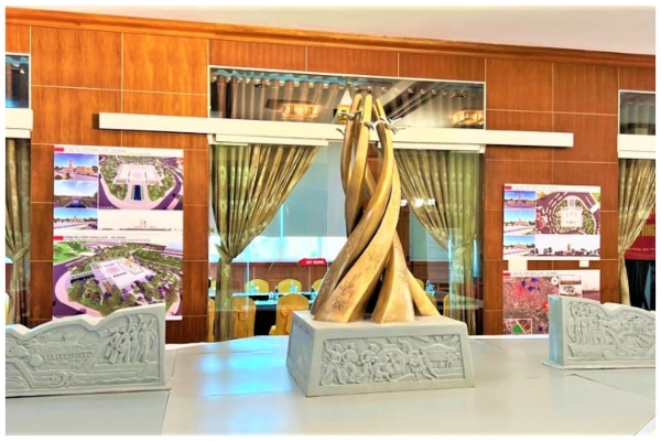 Với tác phẩm có mã số HP02, biểu tượng cao 21m, phù điêu tượng bán tròn cao 5,5m, dài 8,5m. Nhóm tượng cao tổng thể 7,2m, trong đó các nhân vật cao 2,6 – 3m. Chất liệu dự kiến bằng đá khối. Một số chi tiết như mây, hoa, đúc đồng nhằm tạo điểm nhấn và thu hút thị giác từ xã cho công trình. Dải lụa bằng tấm thép không gỉ sơn tĩnh điện màu đá.