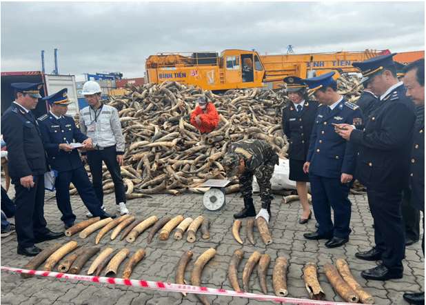Trước đó, ngày 2/2, tại Cảng Lạch Huyện, Hải quan Hải Phòng phối hợp một số cơ quan chức năng kiểm tra 1 container bị nghi vấn và phát hiện 117 khúc ngà voi, nặng 490kg. Số ngà voi này bị trộn lẫn với sừng bò nuôi.