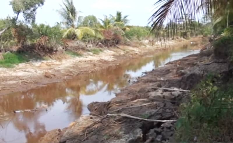 Nhiều kênh nội đồng tại Cà Mau khô cạn, bị xâm mặn. (Hình ảnh: Truyền hình Đồng Tháp)