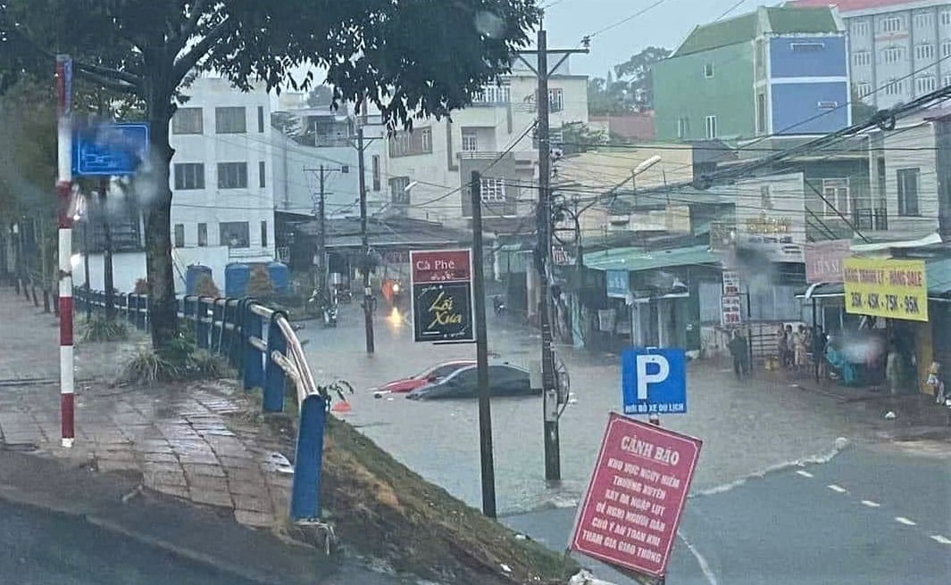 Cơn mưa lớn kéo dài hơn 1h khiến nhiều tuyến đường, khu dân cư tại phường 1 và phường 2 TP. Bảo Lộc (tỉnh Lâm Đồng) bị ngập nặng.