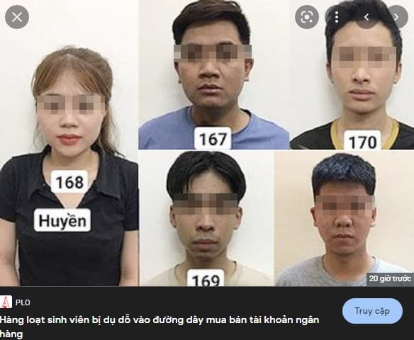 Hơn 30 sinh viên ở các trường Đại học Thương mại, Đại học Điện lực, Đại học kiểm sát, Đại học Quốc gia Hà Nội… được xác định đã lập hơn 100 tài khoản ngân hàng rồi bán theo đường dây, thu lợi bất chính khoảng trên 100 triệu đồng. Các thông tin như ai đặt lập và mua tài khoản ngân hàng, mua với mục đích gì… chưa được công an công bố.