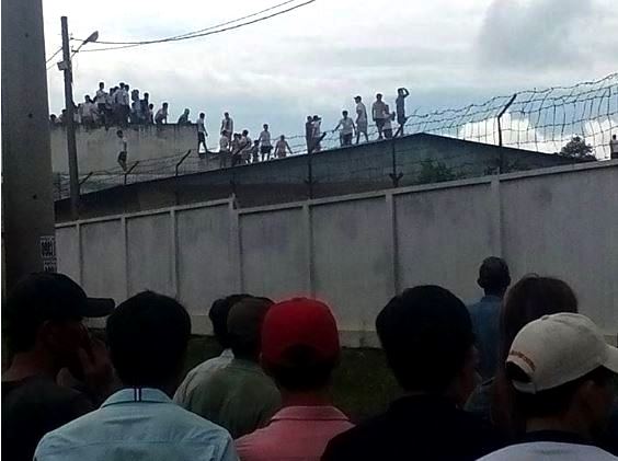 Nhiều học viên trèo lên mái nhà, tường rào của trung tâm. (Ảnh chụp màn hình: FB)