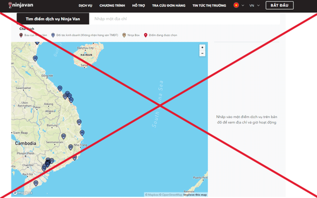 Website của hãng vận chuyển Ninja Van tại Việt Nam đã gỡ bản đồ thiếu thông tin về 2 quần đảo Hoàng Sa và Trường Sa thuộc chủ quyền Việt Nam.