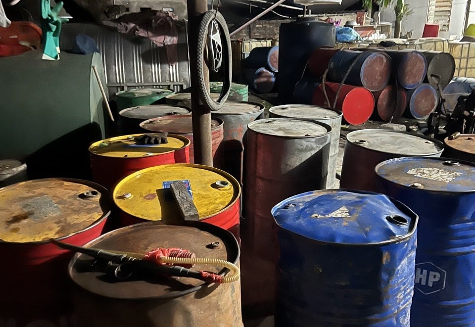 1.170 lít xăng và 1.950 lít dầu DIEZEL không có chứng từ vừa bị cơ quan quản lý thị trường Hà Nội phát hiện tại một hộ bán lẻ xăng dầu tại huyện Sóc Sơn, Hà Nội.