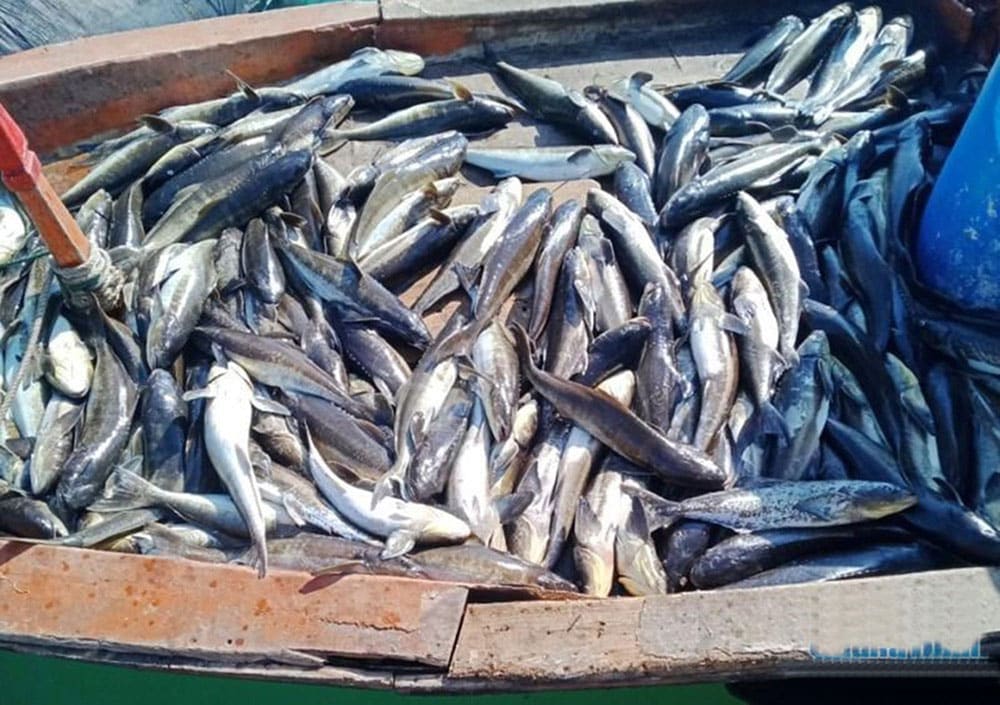 Cá bớp chết trắng khiến cuộc sống của ngư dân đảo lộn. (Ảnh: baoquangngai.vn)