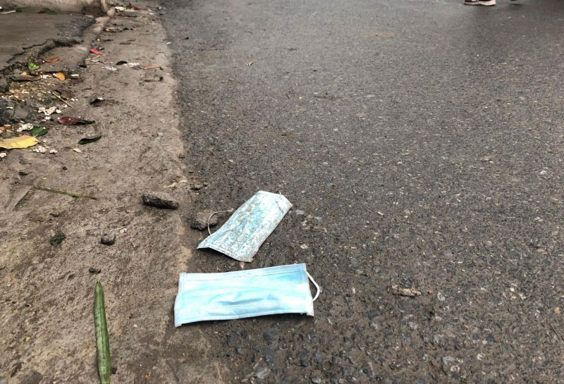 Người dân vứt khẩu trang bừa bãi, không đúng nơi quy định có thể bị phạt tới 7 triệu đồng. (Ảnh: hanoimoi.com.vn)