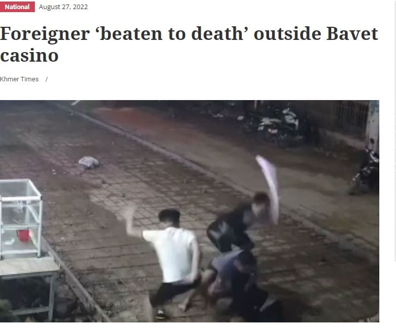Một người đàn ông Việt Nam (34 tuổi) đã bị một đám đông cầm gậy đánh tử vong bên ngoài sòng bạc ở Bavet, Campuchia vào sáng hôm 26/8, theo tờ Khmer Times.