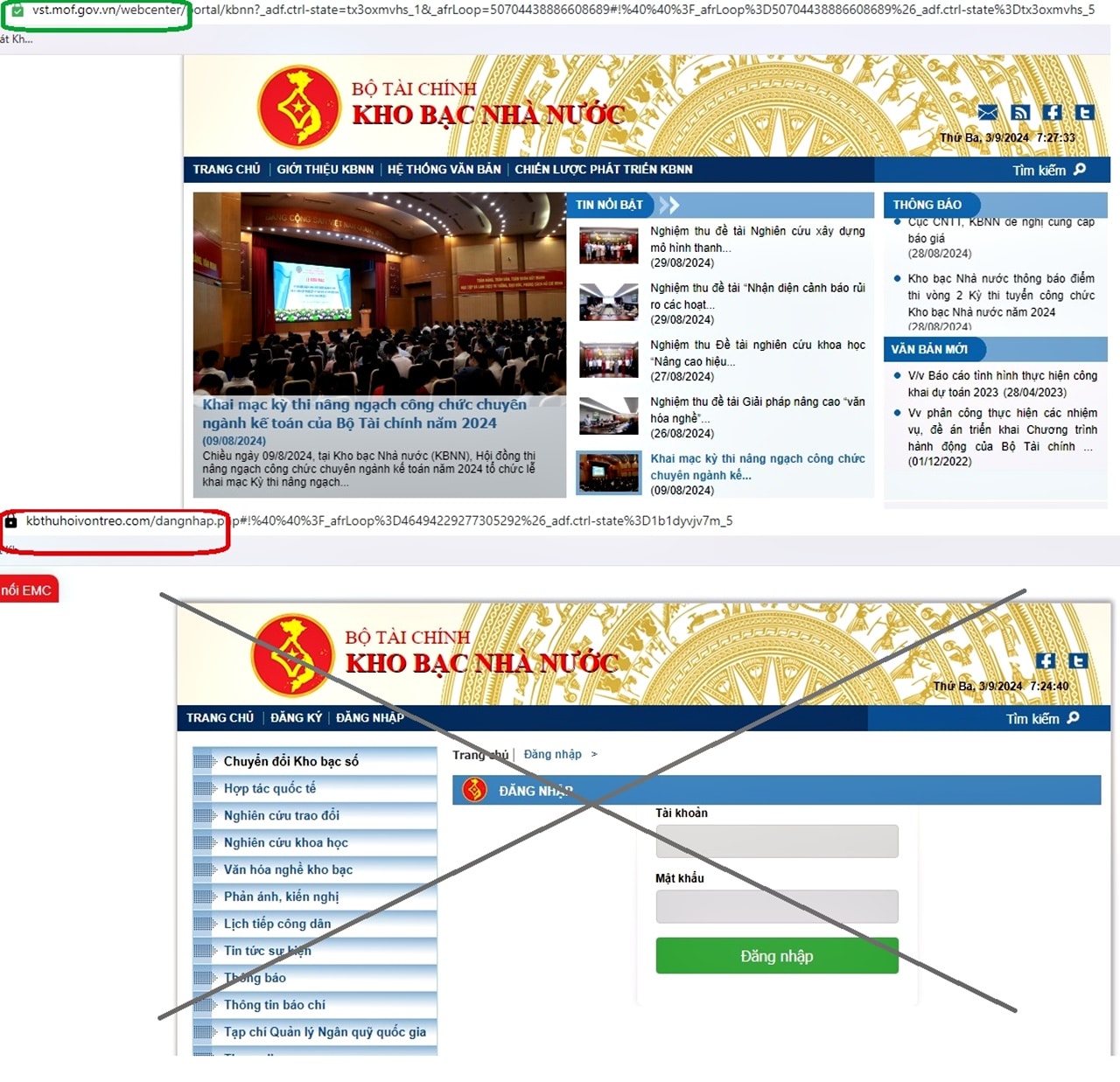Từ khóa kho bạc nhà nước đánh cắp thông tin giả mạo website