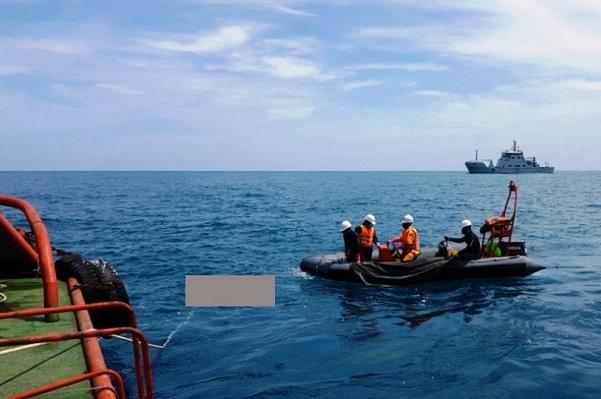 Lực lượng cứu hộ đưa thi thể một thuyền viên tàu Hải Thành 26-BLC lên tàu. (Ảnh: Vietnam MRCC)
