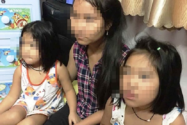 Hai bé gái ở cùng người nữ giúp việc khi được giải cứu. (Ảnh: Cơ quan công an).