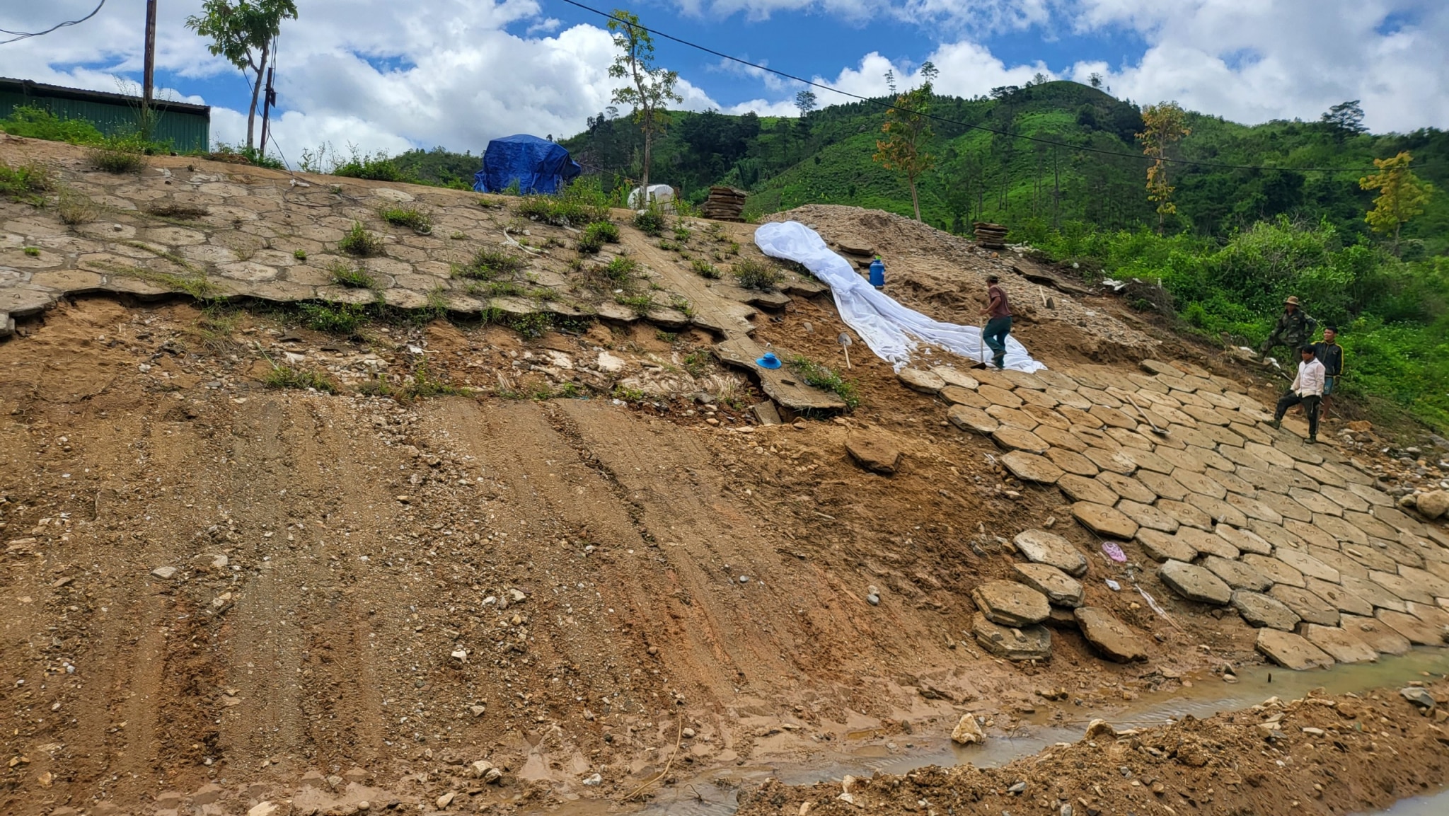 “Công ty TNHH Tuấn Dũng là doanh nghiệp lớn, mạnh. Nhà thầu sẽ đào chỗ sạt lở để đắp, tấm lát trôi thì nhặt và lát lại. Công ty này sẽ bỏ ra 1 tỷ đồng để sửa, cố gắng 1 tháng là khắc phục xong hư hỏng”, ông Tuấn nói với báo Sài Gòn giải phóng.