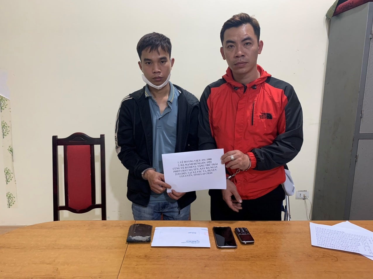 Đội CSĐT tội phạm về hình sự, kinh tế, ma túy phối hợp với Công an xã Pắc Ta, Hố Mít làm nhiệm vụ tại khu vực bản Mít Thái, xã Pắc Ta phát hiện và bắt quả tang 02 nghi phạm Việt và Hùng, có hành vi Tàng trữ trái phép chất ma túy.