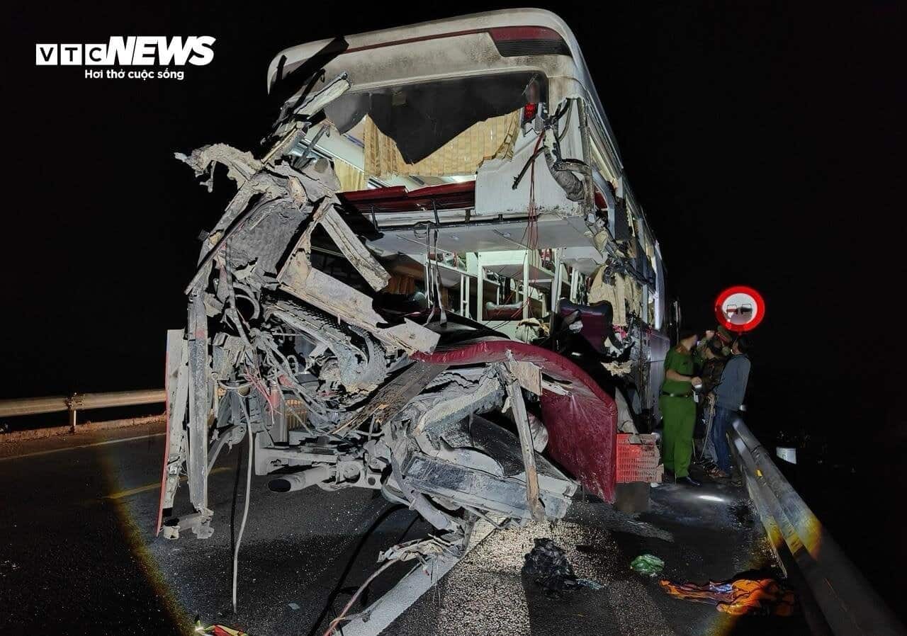 Cú va chạm khiến 2 người trên xe khách tử vong, 9 người khác trên xe này bị thương.
