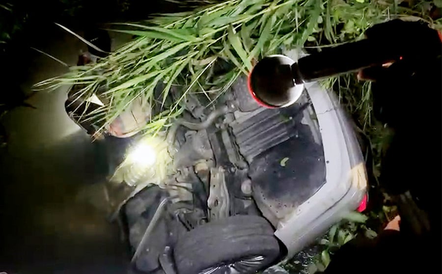 Nữ tài xế điều khiển ô tô BMW mất lái va chạm gờ bó cống rồi lao xuống kênh ở TP. Long Xuyên (tỉnh An Giang).