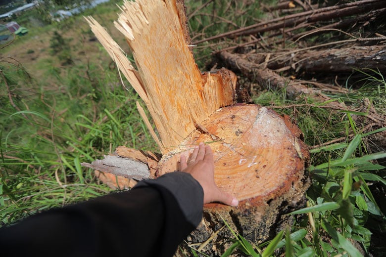 Ông Cường nhận định lâm tặc lợi dụng ảnh hưởng của cơn bão Noru nên đã dùng cưa pin không có tiếng máy nổ để cưa trộm thông nên lực lượng quản lý rừng không phát hiện được.