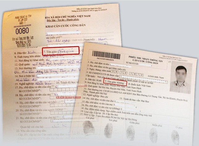 Thẻ căn cước của ông Khôi cuối cùng được làm với thông tin “Tôn giáo: Không”, do người phụ trách tự sửa mục Tôn giáo từ “Phật giáo” thành “Không”.