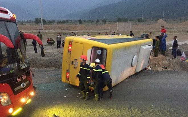 Lật xe khách về quê ăn Tết: 2 người chết, hơn 10 người bị thương