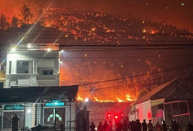 Tối đêm 12/4, tỉnh Quảng Ninh liên tiếp xảy ra 2 vụ cháy rừng. Lửa phát lên tại khu vực Khe Bốc, thị trấn Bình Liêu, huyện Bình Liêu, bị gió bốc lan rộng, sau đó khu vực rừng ở Đại Yên, TP Hạ Long cũng xảy ra cháy, cháy sát xuống nhà dân.