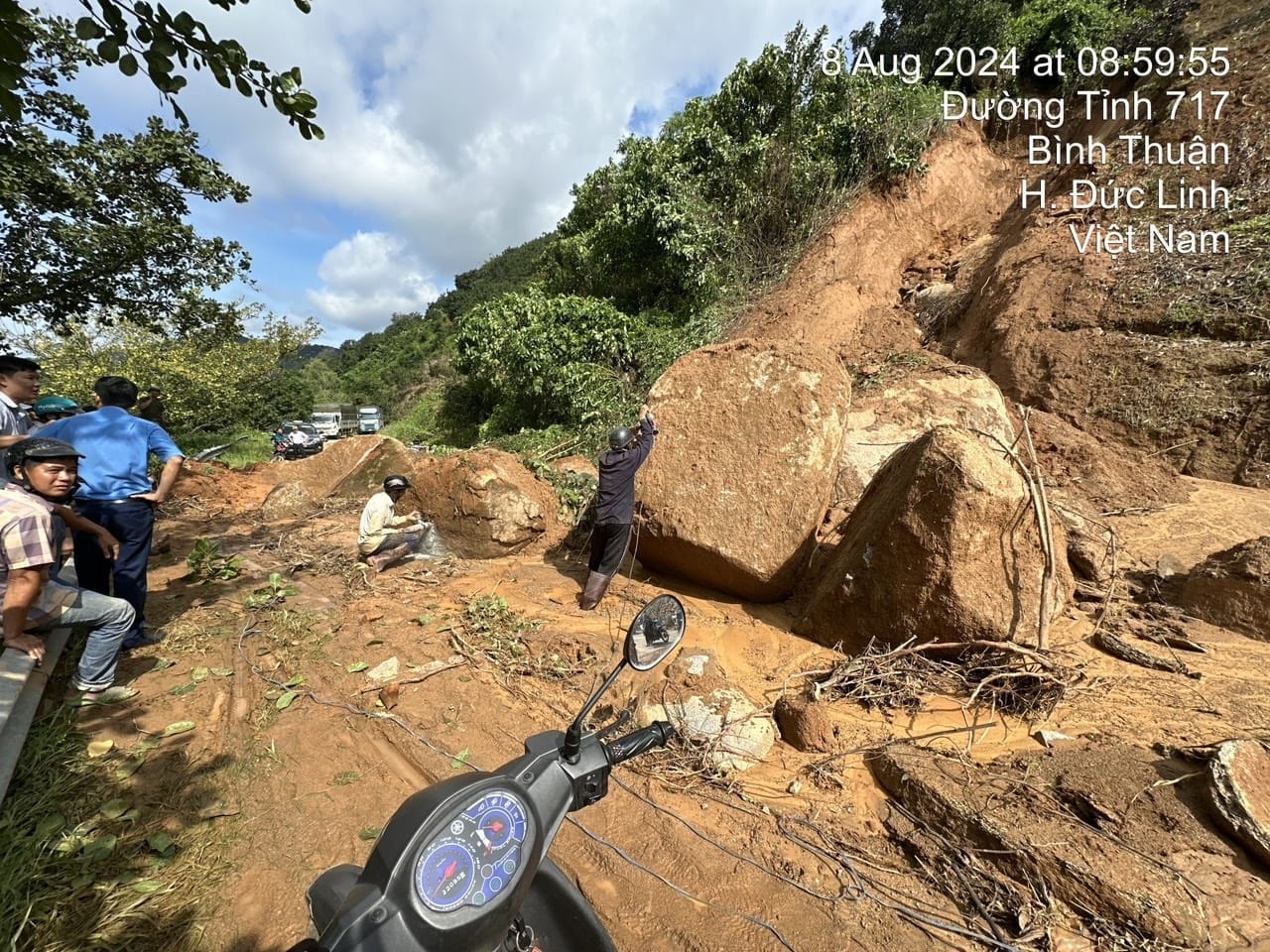 Vụ sạt lở nghiêm trọng xảy ra vào khoảng 0h ngày 8/8, trên đèo Tà Pứa đoạn thuộc địa phận xã Mê Pu, huyện Đức Linh. Nhiều tảng đá ớn nặng hàng tấn cùng đất lở từ trên cao rơi xuống chắn ngang đường đèo. Xe từ Bảo Lộc xuống và Tánh Linh lên đều phải quay đầu.