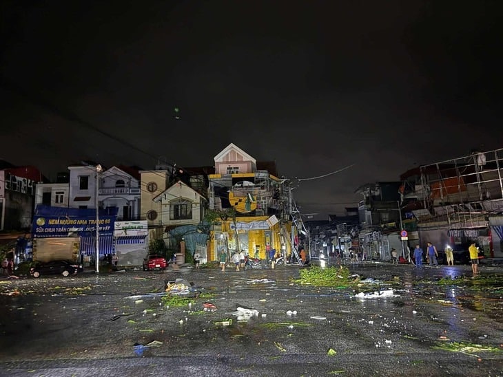 Tại phường Lý Thường Kiệt, bà Đặng Thị Đ., SN 1937, tử vong do nhà đổ sập đè trúng. Hơn 200 nhà dân bị hư hỏng, trong đó có một ngôi nhà 3 tầng bị xé toạc mặt trước.