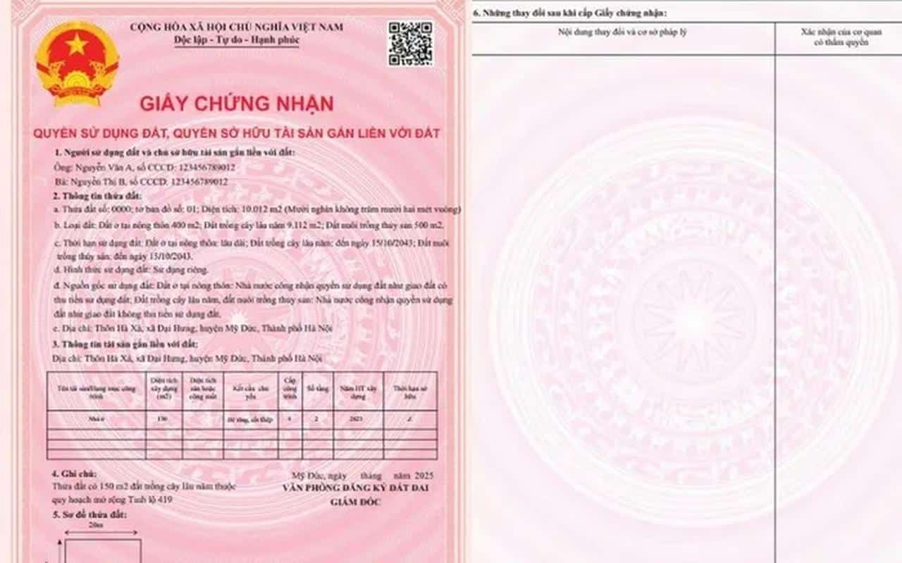 Theo Bộ TN-MT, mẫu giấy chứng nhận quyền sử dụng đất mới (sổ đỏ, sổ hồng) sẽ chỉ còn hai trang, mã QR được in ở trên cùng, góc phải trang một.