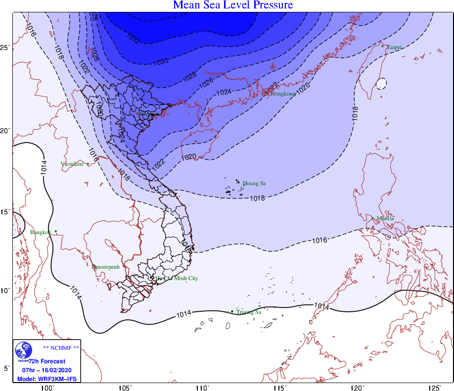 Từ khoảng chiều tối và đêm ngày 15/02, gió chuyển hướng đông bắc trong đất liền cấp 3, vùng ven biển cấp 3-4. Từ đêm ngày 15 đến khoảng ngày 18/02, ở vịnh Bắc Bộ gió chuyển hướng đông bắc mạnh cấp 6-7, giật cấp 8, biển động mạnh; ở khu vực Bắc Biển Đông gió đông bắc mạnh lên cấp 6-7, giật cấp 8-9, biển động mạnh; ở vùng biển từ Bình Thuận đến Cà Mau và vùng biển phía Tây của khu vực Nam Biển Đông (bao gồm cả vùng biển phía Tây quần đảo Trường Sa) từ ngày 17/02 gió đông bắc mạnh lên cấp 6, giật cấp 8, biển động.
