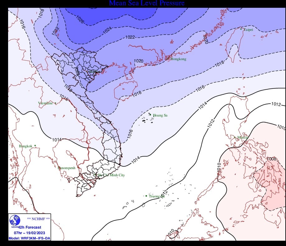 Dự báo khoảng gần sáng và ngày 19/2, bộ phận không khí lạnh này sẽ ảnh hưởng yếu đến Bắc Bộ, sau đó ảnh hưởng đến Bắc Trung Bộ và một số nơi ở Trung Trung Bộ. Gió Đông Bắc trong đất liền mạnh dần lên cấp 2-3.
